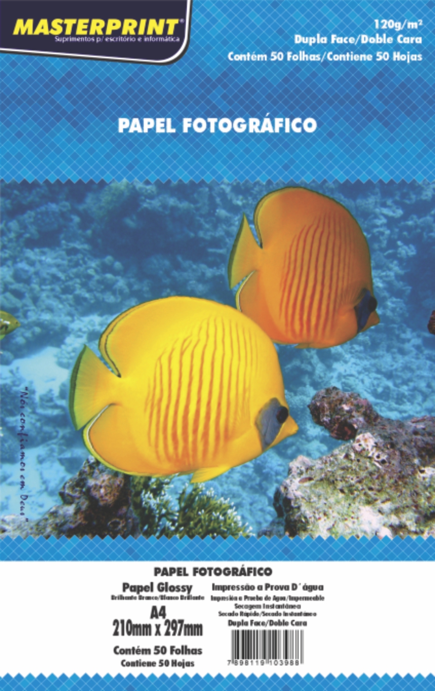 Papel Fotográfico Dupla Face - Masterprint - Glossy/Brilho - 120g - A4 - 210x297mm |