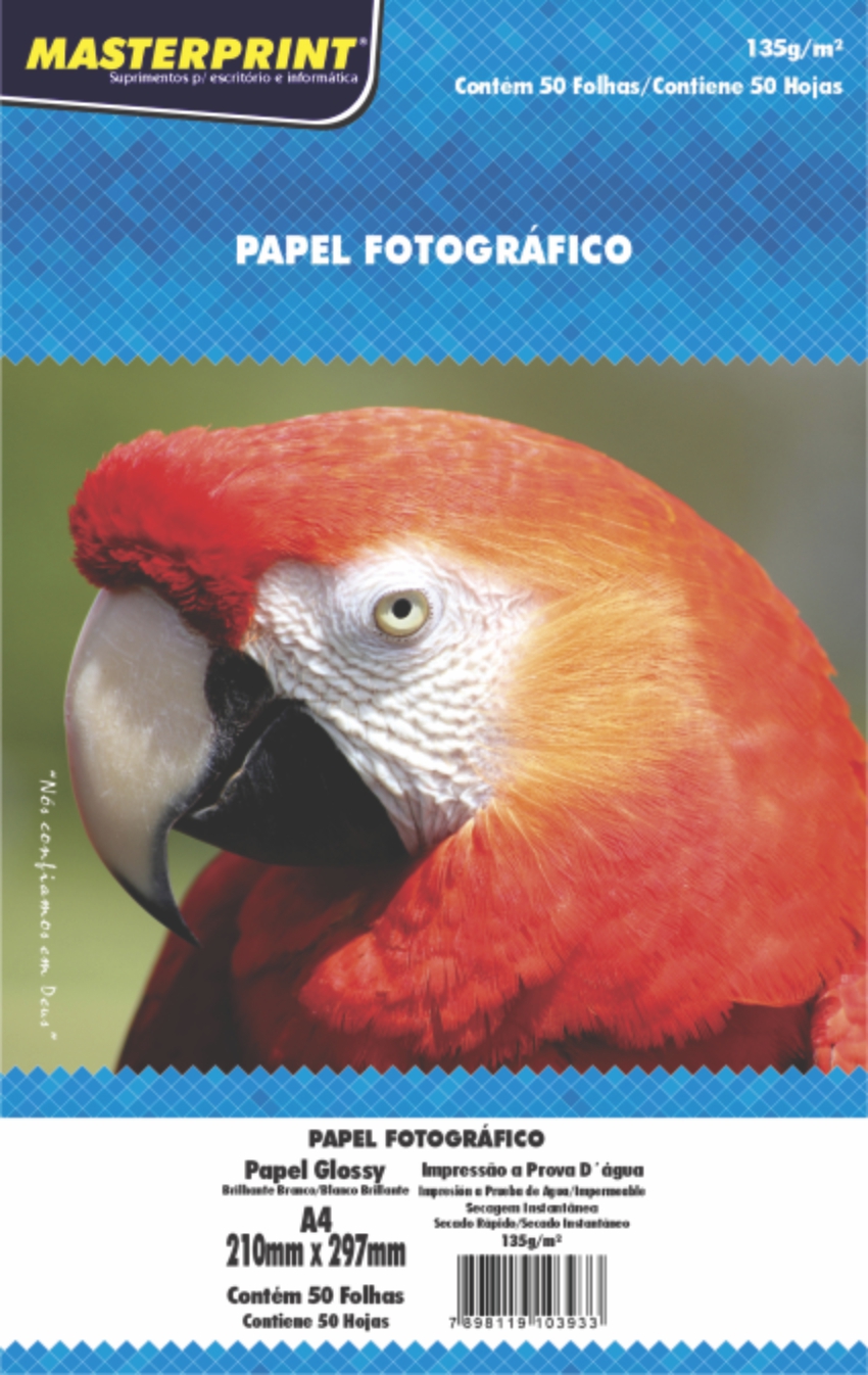 Papel Fotográfico - Masterprint - Brilho/Glossy - 135g - Jato de Tinta - A4 - 210x297mm |