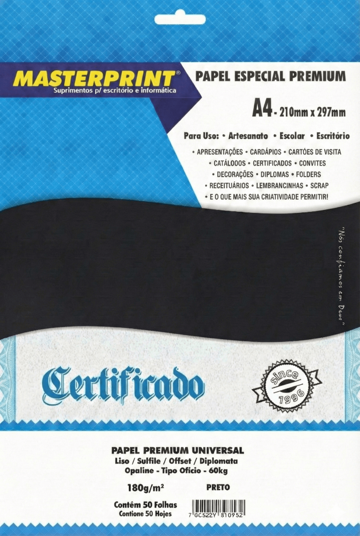 Pacotes a partir de 50 Folhas de Papel Diplomata Masterprint Preto A4 180g |